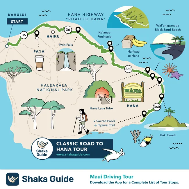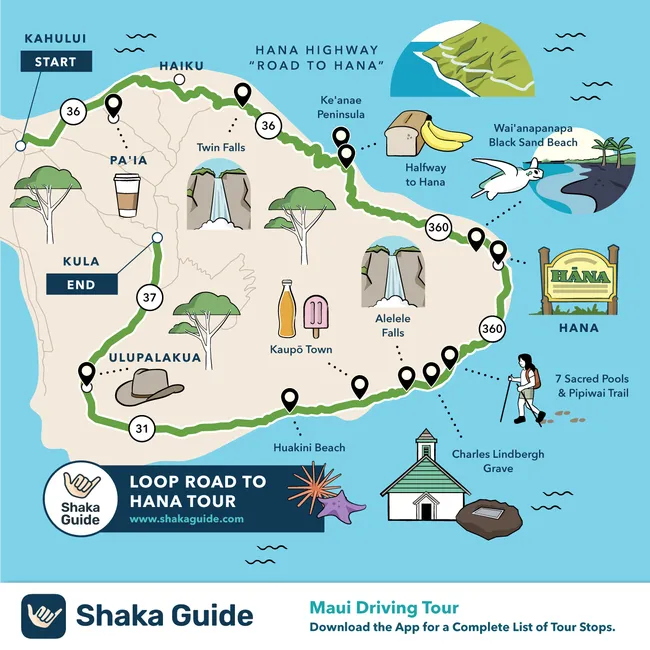 - Shaka Guide offers detailed maps for three Road to Hana routes: Classic, Loop, and Reverse.