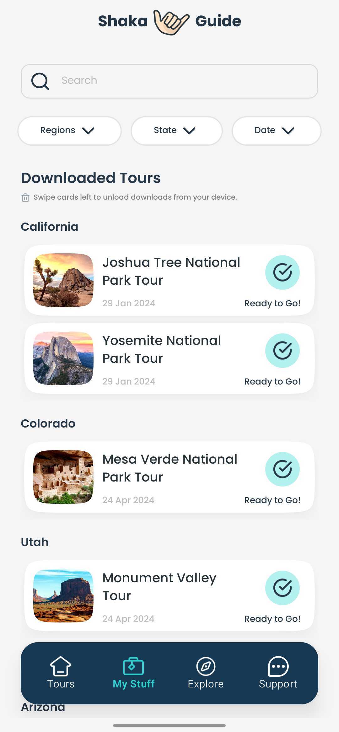 - If you already have the Shaka Guide app installed on your phone, then clicking on the link or scanning the QR code would open up the Shaka Guide app and automatically add your new tours onto the My Stuff section on the app.