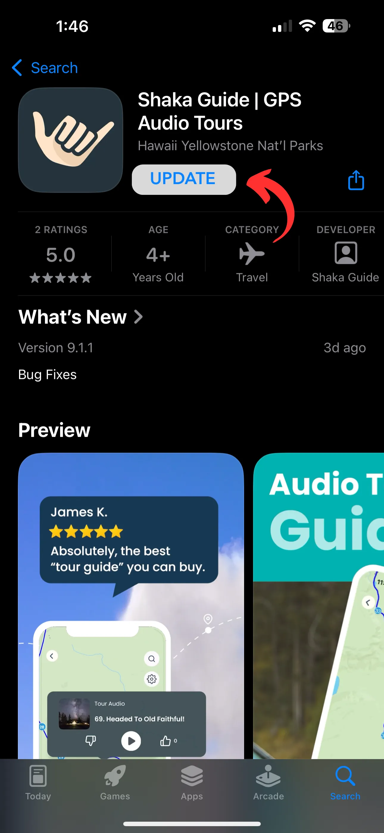 1) Make sure you have the latest version of our Shaka Guide: GPS Driving Tours app from the App Store or Play Store.
